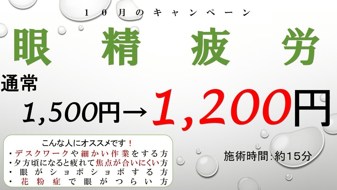 今月のキャンペーンは眼精疲労です!